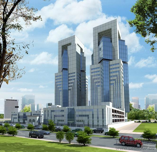 ,該建筑由兩棟完全一樣的22層大樓形成對(duì)稱美