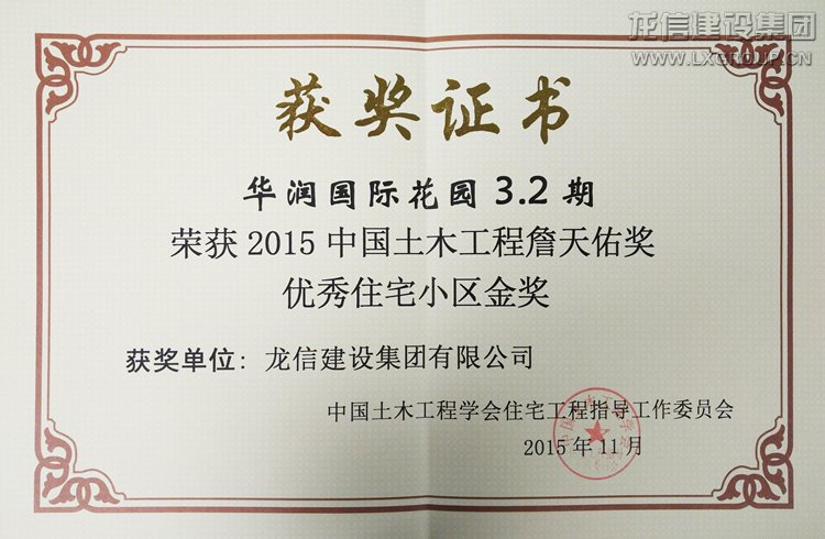“中國土木工程詹天佑獎”是全國建設(shè)領(lǐng)域土木工程方面開展的最具權(quán)威的表彰獎勵項目,也是國家科技獎勵辦公室首批核準的社會科技獎勵項目。創(chuàng)新性、先進性與權(quán)威性是“詹天佑獎”評選最能代表的三個方面。華潤國際花園項目憑借質(zhì)量、環(huán)境、規(guī)劃、科技等方面的杰出表現(xiàn),重新定義了于傳統(tǒng)模式完全不同的高品質(zhì)城市生活。本次“詹天佑獎優(yōu)秀住宅小區(qū)金獎”的榮獲是對龍信建設(shè)品牌的認可,公司始終秉承誠信經(jīng)營理念,贏得無數(shù)榮譽的同時,屢屢在行業(yè)中收獲好評。公司堅信打造企業(yè)品牌的不是媒體,而是企業(yè)本身,扎扎實實做好品質(zhì),品牌才能得以樹立和發(fā)展。